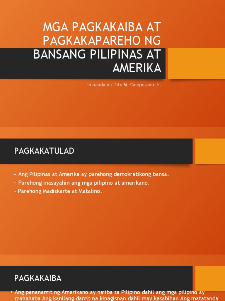 Mga Pagkakaiba At Pagkakapareho Ng Bansang Pilipinas At Amerika Pdf