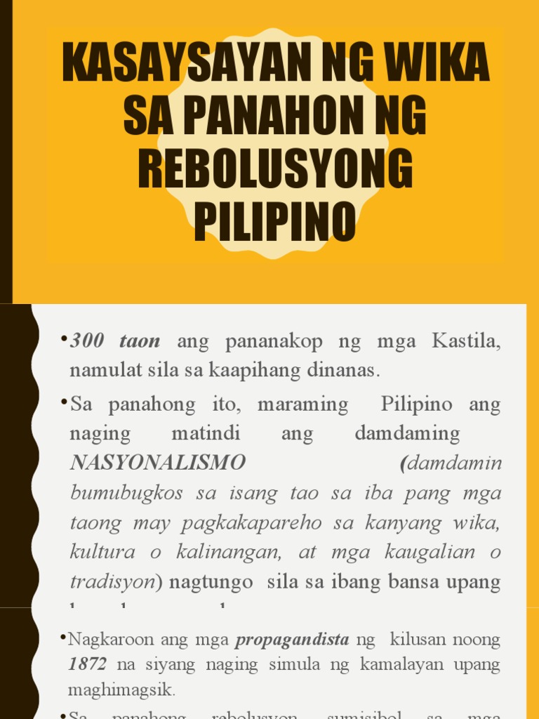 Kasaysayan Ng Wikang Pambansa Sa Panahon Ng Rebolusyong Pilipino Pdf